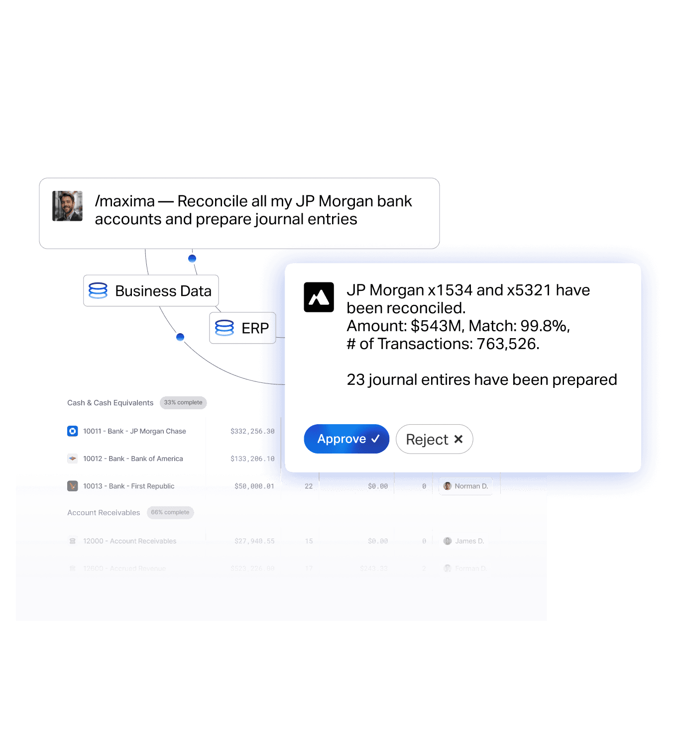 Maxima’s auditable AI agents automate your most painful close workflows — so your team stays in complete control